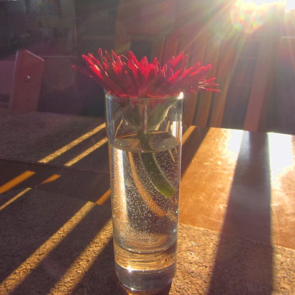 Víkend byl ve znamení vzpamatovávání se. Tohle je přeživší gerbera z hotelové výzdoby, kterou jsem v průběhu pařícího večera dostala. A pořád se drží! :)