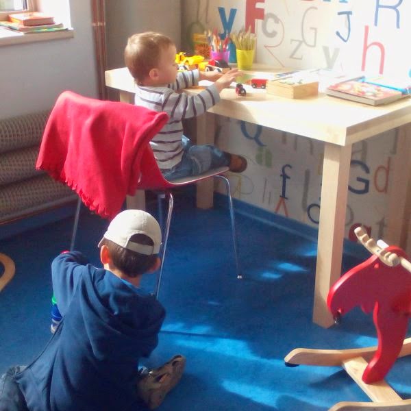 Na odpoledne jsme měli v plánu návštěvu knihovny, protože nás tam čekala zamluvená hra. Za poslední dva měsíce už jsme tam byli třikrát, kluci to tam milujou, byť teda moc klidu na vybírání knížek tam s nima člověk teda neužije. Tentokrát jsme se tam moc nezdržovali, přece jen jsme tam byli relativně nedávno, ale zase jsme se cestou z knihovny stavili ještě dolů do kavárny. Sedla jsem si poblíž pultu a až pozdě jsem si všimla, že o pár stolů dál je na konci dětský koutek. To už mi děti ke kafi nanosili několikero knížek, hraček, vozíků a kdečeho. Tak jsem to všechno mezi usrkáváním kafe postupně zase odnosila zpátky a společně jsme pak zkoumali, co tam všechno mají (mimochodem, odhaduju, že vybavení je komplet Ikea, tak jsem si aspoň všechno obhlídla :)). Když se mi podařilo kafe dopít a sebrali jsme se k odchodu, tak se mi dostalo sice moc milé, ale jinak dost smutné pochvaly: "Vy jste první matka, co tu po dětech uklízí..."
